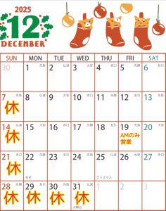 12月のお休み更新しました